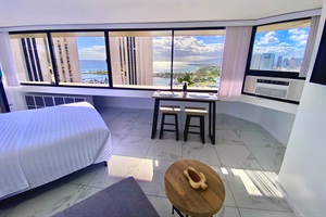 1 Bedroom • 1 Bathroom 1 Bath • Sleeps 1-3Enjoy your stay with us in our Modern and Updated Waikiki Beach Condo. Spectacular panoramic views from unit includes Ocean, Harbor, Sunset, City and FIREWORKS every Friday @8pm. Walk the Duke Kahanamoku boardwalk to famous beaches; Waikiki Beach, Hilton Hawaiian Lagoon, Ala Moana Beach Park, and Magic Island. World class Dining/Shopping are minutes away at Ala Moana Shopping Center (world's largest open-air mall), Hilton Hawaiian Village, International Marketplace, and Waikiki Shopping Plaza.